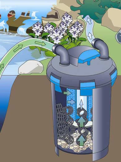 Mit dem Druckfilter-System Biopress 6.000 erhalten Sie klares Wasser und schaffen somit ein gesundes Klima für die Teichbewohner. Der Druckfilter mit einer Kabellänge von 3 m verfügt über einen Schnellverschluss zum einfachen Öffnen und Schließen sowie über einen praktischen Reinigungs-mechanismus zur komfortablen Wartung. Die unterschiedlichen Filtermedien (Schwämme, Filtergestein, Bioballs) bieten optimale Siedlungsflächen für die Filterorganismen.