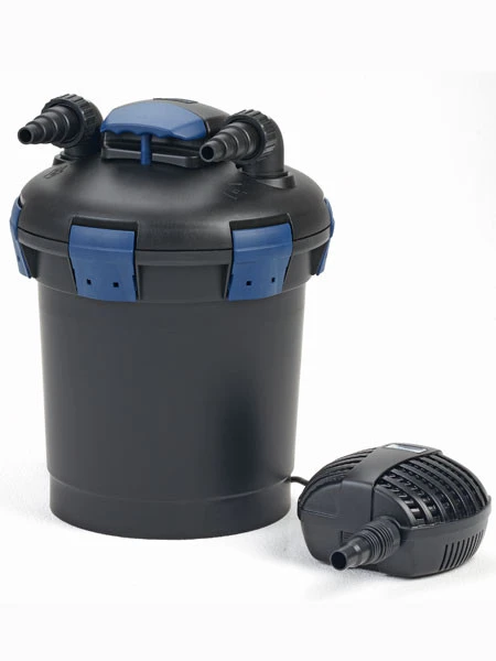Das OASE Druckfilter Biopress 6.000 Set ist ein komplett einsatzfertiges biologisch-mechanisches Filtersystem.