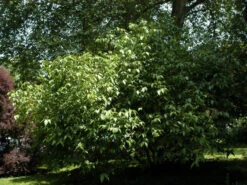 Laub: Das lanzettliche bis eiförmige Laub hat eine glänzende und fein beaderte Oberfläche. Der Rand des Blatts ist glatt mit einigen wenigen auffallenden Härchen versehen. Die Blattunterseite ist grau. Im Herbst bildet sich dann eine leuchtend gelbe Herbstfärbung.