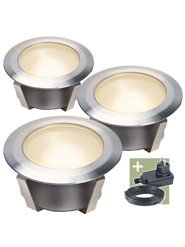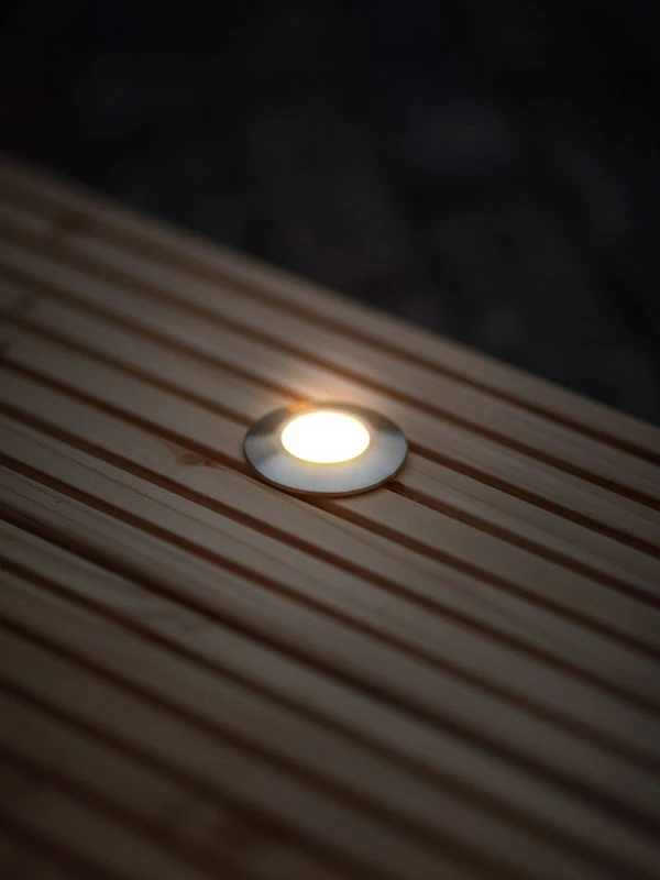 Das Starter-Set des Ludeco Einbaustrahlers Olan 40 eignet sich sehr gut zum Verarbeiten inTerrassendielen. Seine 16 Lumen sorgen für ein warmweißes Licht, das sich ideal als Stimmungslicht oder zur Beleuchtung eignet. Die drei Edelstahl-Spots sind sehr energieeffizient und mit ihrer Schutzart IP44 spritzwassergeschützt.